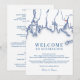 Partagez l'excitation de votre week-end mariage avec cette élégante carte d'événements de week-end bleu marine mariage. L'avant est un message d'accueil chaleureux, tandis que l'arrière fournit un itinéraire détaillé de vos célébrations du week-end. Parfait pour les couples qui aiment le noeud à Stonington, CT, cette carte aide les clients à planifier des moments spéciaux dans des lieux comme Saltwater Farm Vineyard, The Hounds, et Stone Acres Farm. Donnez le ton pour votre week-end inoubliable. Oeuvre de la carte côtière Designs.