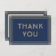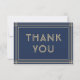 Carte De Remerciements Stylish Marine Blue & Gold Frame Classic Typograph