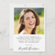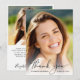 Carte de remerciement élégante pour la remise de diplômes avec la photo du diplômé superposée avec « merci » dans un script stylisé et leur nom, école et année de promotion dans une typographie simple. Au verso, ajoutez une photo supplémentaire, personnalisez un message de remerciement et ajoutez le nom du diplômé dans un script ressemblant à une signature.