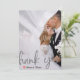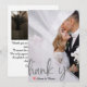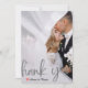 Exprimez votre gratitude avec une élégance moderne. Ce design présente un effet de superposition de faux vélin romantique et un placement de photo personnalisé pour une finition chic et minimaliste. Ce design utilise un effet numérique sophistiqué pour simuler l'apparence du papier vélin translucide. Une couche blanche semi-transparente crée un fond «brumeux» ou « givré » sur votre photographie personnalisée, permettant à l'image de transparaître doucement. La typographie présente une grande écriture cursive au pinceau dans un ton gris argenté imprimé - simulant de l'encre métallique sans la brillance. Un petit cœur en aquarelle peint à la main en rouge profond fournit la seule touche de couleur sur la palette monochrome grise et blanche. Il s'agit d'une image imprimée plate avec un effet {Faux Vélin et Argent Imprimé}. Il ne contient pas de véritables