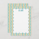 L'avant de la carte montre votre monogramme avec une bordure de lignes verticales ondulées turquoises et orange. Le dos est orné de la même motif turquoise et orange. Ces lignes turquoises et oranges sont conçues selon la façon dont les vagues se lavent jusqu'au rivage.