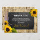 Une magnifique carte de remerciements à envoyer à des amis et à la famille qui vous ont montré de l'amour et du soutien pendant votre deuil. Doté d'un arrière - plan en bois rustique, un tableau noir vintage décoré de grands tournesols jaunes, lavande violette, texte blanc et script de calligraphie. Tout le texte est facile à customiser avec vos propres détails.