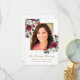 Merci à votre famille et à vos amis d'avoir assisté aux funérailles de l'un de vos proches et à leurs notes aimables avec cet élégant carte de remerciements photo floral personnalisé. Cette élégante modèle design présente une photo à l'avant avec un cadre en faux or accentué de roses rouges et blancs avec verdure. Ci-dessous, dans un faux script en or, on peut lire "In Loving Memory" avec un nom et une date à personnaliser. Le dos de la carte contient votre message de remerciement, votre signature et votre devis pour vous permettre de customiser aussi bien accentué par une croix d'or aux roses rouges. Conçu par Susan Coffey.