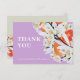 Carte de remerciements élégante et chic avec de belles branches tangerines florissantes. Carte botanique florale aux fleurs et agrumes délicats au printemps. Orange, pastel et lilas. Personnalisez avec vos noms.