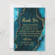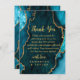 Carte De Remerciements Teal Blue and Gold Agate Marble Wedding