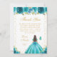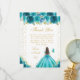 Carte De Remerciements Teal Floral Brunette Hair Princess Sweet Sixteen