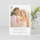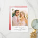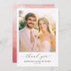 This elegant thank you card features a soft, romantic design with a warm color palette of pastel pinks and creams. The composition includes a beautiful couple's photo set against a gentle, sunlit background, evoking a sense of joy and celebration. The typography is sophisticated, with a flowing script that adds an inviting touch to the overall aesthetic. Perfect for expressing gratitude after a wedding or special event, this card captures a timeless and heartfelt mood, making it ideal for sharing appreciation in a stylish way.