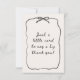 This beautiful thank you card features a sweet, heartfelt line, enhanced with an elegant black bow at the top and a stylish ribbon-inspired border. The design blends charm and sophistication, making it perfect for expressing gratitude in a classy and memorable way.
