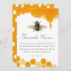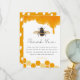 Jolie carte de remerciement de fête d'anniversaire sur le thème de l'abeille avec illustration d'un bourdon avec du miel qui coule en haut. Il y a également un motif en nid d'abeille. Le texte par défaut remercie les invités pour la célébration et le cadeau. Personnalisez ce produit en ajoutant votre nom en bas. Design neutre en termes de genre.
