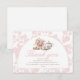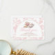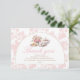 Classic tea party baby shower thank you design featuring pink floral toile with watercolor teapot and teacup artwork. A sweet and elegant way to show appreciation while keeping your stationery set cohesive.