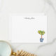 Personnalisez une carte de note élégante et plate avec un magnifique topiaire d'arbre à citron aquarelle dans un vase bleu et blanc.