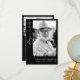 Honorer la mémoire d'un être cher avec cette carte commémorative à deux côtés élégante. Le devant est orné d'une photo en noir et blanc encadrée d'une bordure noire intemporelle, accompagnée de l'expression sincère "Toujours dans nos coeurs" en écriture gracieuse, avec le nom de votre être aimé et les dates de vie dans la typographie classique. Le dos continue l'hommage avec une autre photo chère et un message touchant "amour et gratitude", exprimant nos sincères remerciements à ceux qui ont offert leur soutien et leur gentillesse. Ce design allie simplicité et sophistication, offrant une belle façon de commémorer une vie bien vécue et de partager votre appréciation avec vos amis et votre famille.