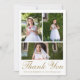 Cet élégant carte de remerciements catholique de la première sainte communion comporte un collage photo avec une jolie typographie couleur or sur le devant, et un doux message de remerciement sur le dos avec une simple croix d'or et des feuilles rustiques aquarelle verdure. Cette première carte de remerciements sacrée est modifiable pour diverses occasions religieuses chrétiennes, ou pour mettre à jour votre message de remerciement personnel.