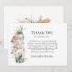 Célébrez votre jour spécial avec notre superbe carte de remerciement de mariage de la collection Tropical Garden. Dotée d'un design aquarelle enchanteur d'orchidées tropicales, de feuilles de monstera et de palmier luxuriantes, de frondes de palmier séchées et d'herbe de pampa délicate, cette carte capture l'essence d'un paradis tropical. Les tons terreux apportent une touche de beauté naturelle à votre message sincère.