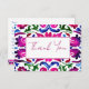 Carte de remerciement de mariage avec tuiles Majolica mexicaines Talavera espagnoles roses magenta et bleues. Tuiles aquarelles modernes aux couleurs rose et bleu avec motifs folkloriques traditionnels.