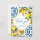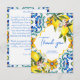 cartes de remerciement tuiles de majolique méditerranéennes citrons shower de mariage, style italien Capri, Côte d'Amalfi, cartes de remerciement de thème Sicilia pour les événements d'été.