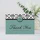 Carte De Remerciements Turquoise Mariage de monogramme Damask