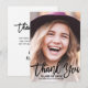 Envoyez un minimaliste carte de remerciements de graduation photo personnalisée à votre famille et à vos amis pour leur généreux soutien. Ce design simple et chic présente votre image sur le devant avec une superposition de typographie en écriture noire qui dit "Merci" avec votre nom et votre année à personnaliser. Le dos de la carte comporte un message de remerciement avec signature pour customiser accentué par un chapeau de graduation. Félicitations pour votre diplôme ! Conçu par Susan Coffey.