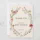 Express votre gratitude sincère de la plus belle façon avec nos voeux Fleurs sauvages carte de remerciements. Doté de fleurs sauvages d’aquarelle douce, de panneaux délicats et de papillons clignotants, cette carte capture la sérénité de la nature, ce qui en fait la meilleure façon de remercier vos invités pour la célébration de l’arrivée prochaine de votre petit. Conçu pour s'adapter au thème capricieux du baby shower d'inspiration boho, ce carte de remerciements ajoute une touche florale personnelle à votre appréciation. Le design élégant et l'espace de message personnalisable vous permettent de partager vos remerciements d'une manière significative et mémorable.