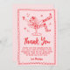 Montrez votre appréciation de façon amusante et élégante avec ce carte de remerciements de fête d'anniversaire, avec un cadre rouge fantaisiste dessiné à la main et une illustration ludique d'une femme allongée dans un verre à martini, avec un casquette cowgirl et des bottes. L'expression "Merci" est élégamment affichée dans un script rouge manuscrit, avec l'espace ci-dessous pour votre message et votre nom personnalisés. Placé face à un arrière - plan rose chic, ce carte de remerciements unique est la touche finale parfaite pour toute célébration d'anniversaire adulte, laissant aux hôtes un geste mémorable et sincère.