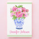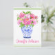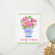 Carte De Remerciements Vase à bordure personnalisée de pivoines roses chi