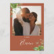Ces élégants numéros de table de mariages fleuris botaniques peuvent être personnalisés avec votre photo et numéros de table en typographie chic sur un arrière - plan en terre cuite. Les cartes sont imprimées à l'avant et à l'arrière (recto double). Conçu par Thisisnotme©