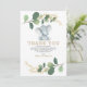 Cette carte de remerciements simple mais élégante présente un adorable petit éléphant et une verdure d'aquarelle moderne dans le vert et l'or doux. Il est accompagné d'un motif de feuille correspondant sur le dos. Utilisez les champs modèles pour ajouter vos détails. Si vous souhaitez modifier le style de police, la couleur ou le placement de texte, cliquez simplement sur le bouton "Customiser plus loin".