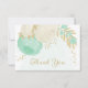 Carte De Remerciements vert menthe et fleurs blanches or fleuri mariage