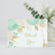 Carte De Remerciements vert menthe et fleurs blanches or fleuri mariage