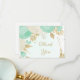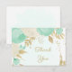 fleurs vert menthe & blanc avec carte de remerciements mariage feuille or. Les détails de la parties scintillant sont simulés.
