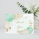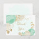 fleurs vert menthe & blanc avec carte de remerciements mariage feuille or. Les détails de la parties scintillant sont simulés.