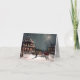 This vintage card image shows a snowy moonlight scene as guests arrive by horse and sleigh for a party at the brightly lit Victorian Mansion, making a great winter thank you card after the holiday gift giving.