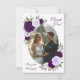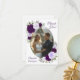 Merci à vos invités mariages pour leur amour et leur soutien avec ce carte photo magnifique. Comprend votre photo dans un cadre ovale entouré d'une abondance de roses d'aquarelle peints à la main dans les tons violet, prune et lavande. L'avant de la carte indique "Merci" en lettres de script élégantes, avec espace pour vos noms ci-dessous. Le dos a de la place pour une petite note et signature ainsi qu'un code QR personnalisable demandant à vos invités de visiter votre galerie photo en ligne pour partager et voir plus d'images mariages. Merveilleuse fin à votre nouveau départ!