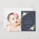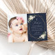 Add a personal touch to your baptism/first holy communion celebration with these stylish and memorable party items! Design features white watercolor flowers, greenery and gold frame on navy blue background.