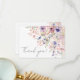 This flat thank you card is designed to match a sweet and whimsical floral theme. The front features soft watercolor wildflowers and greenery surrounding the words “Thank You” in elegant handwritten script calligraphy. The soft color palette of blush pinks, dusty rose, lilac, lavender, violet, and fresh greens adds a gentle and charming touch.