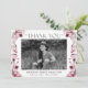 Say "thank you" to your friends and family with our stylish and modern photo graduation thank you cards. The design features the graduate's photo in the middle framed by a border of painted watercolor crystals in shades of wine and burgundy. "Thank You" is displayed at the top in a black modern serif font. Personalize the unique graduation thank you card by adding the graduate's senior photo, name, school name, and graduation year. The card reverses to display your typed or handwritten thank you message with a beautiful burgundy watercolor background.