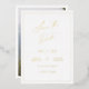 Une carte de remise à date minimaliste avec une véritable feuille d'or et une calligraphie moderne estampée pour annoncer votre mariage de manière parfaite.
