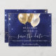 Un rendez-vous à sauvegarder tendance pour une fête d'anniversaire 18 ans (ou tout âge). Un fond de couleur bleu marine irrégulier. Décoré de paillettes bleues et fausses or et de ballons dorés. Le texte : Sauvegarder la date est écrit avec un grand style de lettre manuscrit trendy.
