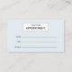 Une façon simple de rappeler aux clients les rendez-vous à venir. Ces cartes de rendez-vous sont imprimées sur le stock carte de visite et permettent d'avoir suffisamment d'espace pour écrire les détails des rendez-vous. Votre nom d'entreprise et vos coordonnées sont imprimés à l'arrière de la carte. Idéal pour les salons, les spas, les professionnels de la santé, les dentistes et plus encore. © 1201AM CREATIVE