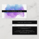 Les cartes de rendez-vous à l'aquarelle chic pour votre salon, spa ou services de beauté présentent votre nom ou votre nom d'entreprise sur une mince bande de noir, superposée sur une illustration en inkblot en fleurs dans des tons vifs et colorés de violet violet et bleu indigo. Ajoutez votre politique d'annulation, votre titre personnalisé et vos coordonnées à l'arrière en blanc sur noir croustillant. Inclut l'espace à écrire dans la date et l'heure du prochain rendez-vous de votre client.
