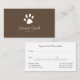 Brown Paw Dog Walking Pet Sitting Vet Rendez-vous modèle de carte de visite avec une image créative d'une patte de familier branchée. Une carte de rendez-vous à l'arrière de ce modèle de carte de visite pour animaux de compagnie Sitting, qui vous aide à distribuer vos cartes de visite. Vous pouvez changer le texte et les couleurs arrière - plans pour les rendre parfaites à votre goût. Un design idéal pour les promeneurs de chiens, les animaux de compagnie assis, les vétérinaires, le toilettage ou l'entraînement de chiens et d'autres services liés aux animaux de compagnie. Une taille carte de visite standard. Les dimensions du carte de visite sont de 3,5 po x 2 po. Ce carte de visite est conçu par superdazzle.com