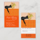 Cette conception de carte de visite faite sur commande vient avec l'option de rendez-vous sur le dos. Rétro conception vintage moderne avec le sèche-cheveux de salon et les rétros motifs géométriques. La conception idéale pour des esthéticiens, des coiffeurs, des coiffeurs et d'autres professions s'est rapportée aux salons et aux soins capillaires. Couleurs : Orange, or et noir audacieux.