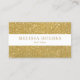 Une carte de rendez-vous chic parties scintillant or moderne avec parties scintillant or brillant en tant qu'arrière - plan avec votre nom mis dans une police or élégante sur un panneau blanc immaculé en faisant un carte de visite parfait pour un large éventail de professions : stylistes, esthéticiennes, coiffeurs et consultants de beauté, spas, maquilleurs pour n'en citer que quelques-uns ! Ajoutez vos coordonnées complètes au verso. Conçu par Thisisnotme©