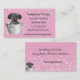 Cartes de visite mignons pour les toiletteurs de chiens. Faites remarquer votre entreprise avec ce chiot dans une baignoire avec bulles. Arrière - plan rose clair avec lumières tout autour.
