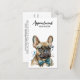 Ces cartes de visite français de soins pour animaux de compagnie Bulldog présentent un aquarelle peint à la main d'un mignon chien français portant une cravate arc et des lunettes. Parfaites pour les toiletteurs de chiens, les gardiens de chiens et tous les professionnels de l'industrie de l'entretien des animaux de compagnie, ces cartes sont professionnelles et adorables. Personnalisez avec le nom du propriétaire de l'entreprise, le titre/le nom de l'entreprise et tous les coordonnées. Parfait pour les marcheurs de chiens, le toilettage de chiens, les gardiens de chiens et toutes les activités liées à l'entretien des animaux de compagnie". Le carte de visite est à double face. Cette collection d'affaires de bulldog français sera un favori des amoureux et des amoureux de les chiens français. DROIT D'AUTEUR © 2023 Judy Burrows, Black Dog Art - Tous droits réservés. Carte de rendez-vous pour chien de garde personnalisé Bulldog
