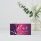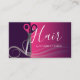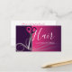 Cartes de visite pourpres/roses modernes de rendez-vous. Les caractéristiques de conception par ciseaux et des cheveux élégants tourbillonnent. L'arrière - plan est pourpre foncé et un rose vibrant. Customisez le texte de modèle avec votre information d'affaires pour lui faire votre propre télécarte unique d'affaires. Illustration par art et conception de ChanDraws. Sentez-vous libre pour me contacter si vous avez besoin de l'aide avec la personnalisation ou si vous voudriez assortir des produits. kepplemorgan@shaw.ca