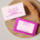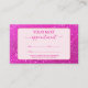 Un design audacieux et à fort impact présentant des paillettes roses chaudes vibrantes associées à une mise en page moderne et épurée. Le panneau central doux garde vos détails nets et faciles à lire tandis que la bordure scintillante ajoute cette énergie de glamour sans excuses. Parfait pour les professionnels de la beauté, les créatifs ou quiconque veut que sa marque soit ressentie comme confiante, féminine et impossible à ignorer.