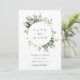 Cette invitation de rendez-vous de mariage comporte de la verdure d'eucalyptus peinte à l'aquarelle, des feuilles vertes et un cadre circulaire. Pour une personnalisation plus avancée de ce design, veuillez cliquer sur le lien "Personnaliser davantage". Des articles assortis sont également disponibles.