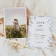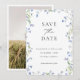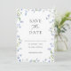 Annoncez votre jour spécial avec style grâce à cette carte "Save the Date" sophistiquée, dotée d'un cadre floral bleu magnifiquement illustré. Le design allie une palette de couleurs bleues intemporelles à une typographie moderne, créant une atmosphère luxueuse et romantique. Ajoutez votre photo au verso.