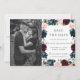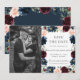 Mettez en valeur votre photo de pré-mariage avec cette carte de rendez-vous photo chic bohème. Avec une belle couronne de fleurs de couleur bordeaux aquarelle, de bleu marine, de rose blush et de feuillage de verdure. Personnalisez-la facilement et rapidement avec vos détails, il suffit d'appuyer sur le bouton personnaliser pour réorganiser et formater le style et l'emplacement du texte.